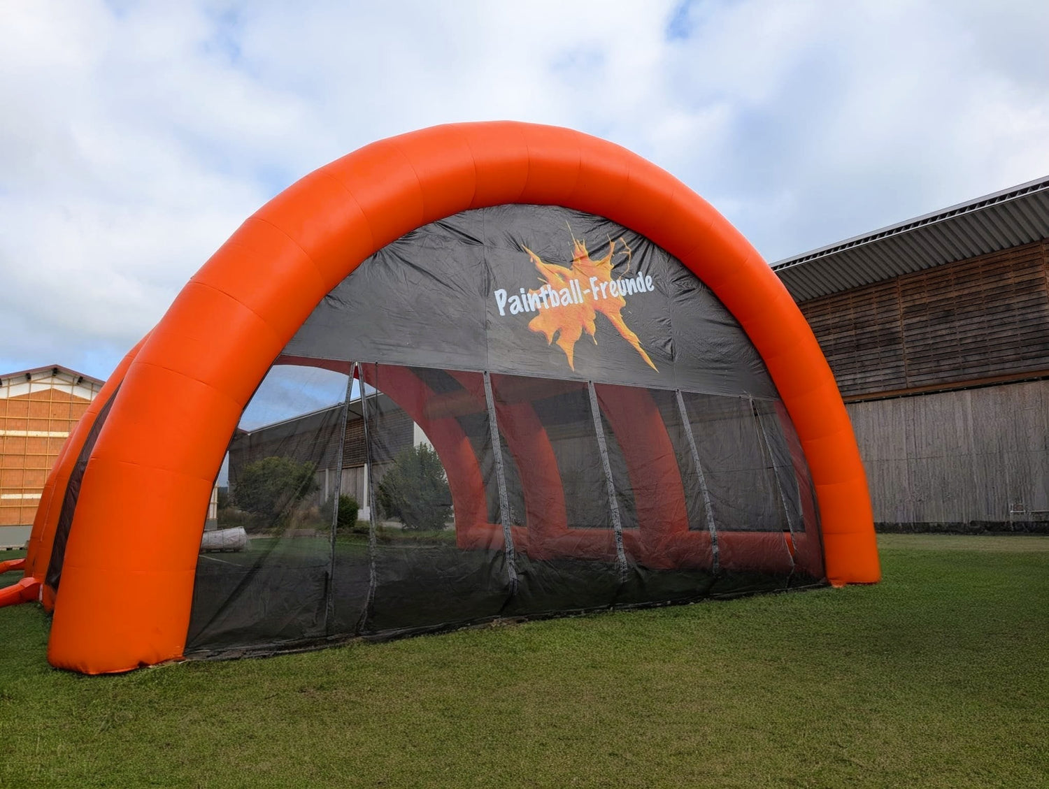 Diese Halle ist die erste ihrer Art in Deutschland. Eine gigantische, aufblasbare Konstruktion ohne störende Stützen und mit 8 Metern Deckenhöhe.